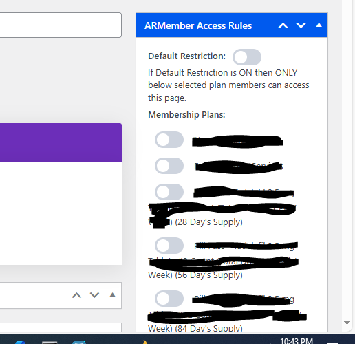 When one is creating a new page or post type (e.g. product, course, etc) AR Member provides "Access Rules" via a blue sidebar on the right of the page / post type.